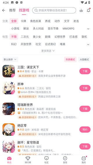 哔哩哔哩游戏中心是一款包含大量游戏类型和游戏资源的软件,也就是大家所熟知的b站游戏板块,可以在这里看到很多游戏爱好者,并且能直接使用哔哩哔哩账号进行登录,快速享受游戏带来的快乐,包含大量正版游戏,根据爱好进行选择,找到最喜欢的游戏分类,快速下载享受游戏。