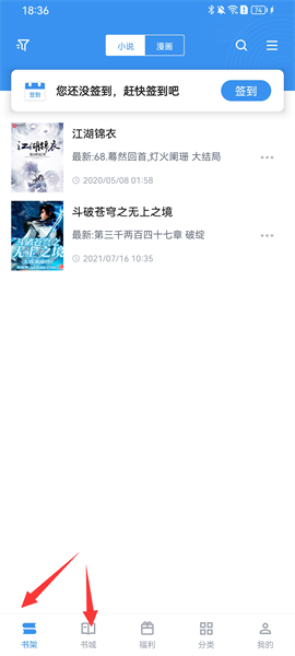 1、在本站下载安装好软件后,点击进入软件,可以点击书架或者的书城,找到想看的书籍,并点击;