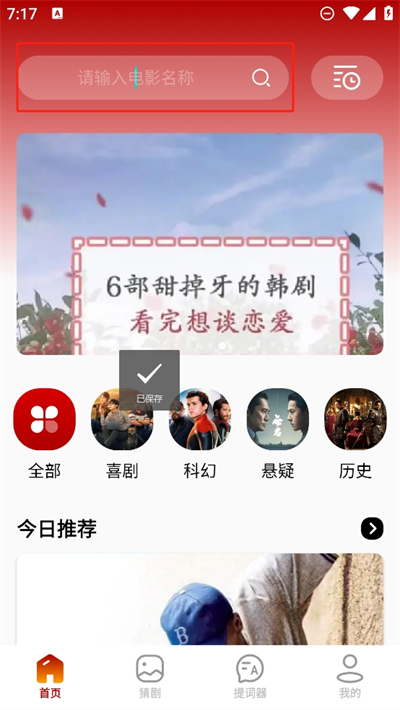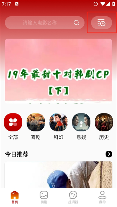 5、在搜索栏的右边还能看到自己历史浏览记录,如果有没看完的作品可以在这里继续观看,并自动跳转历史观看进度。