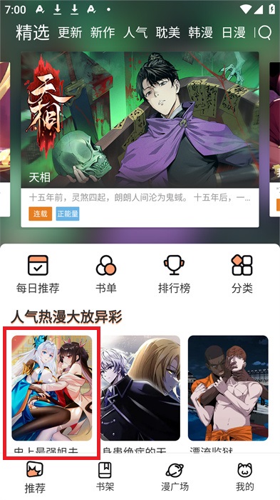 1、打开软件,在软件中点击任意一部【作品】,点击进入到漫画作品的详情页面之中;