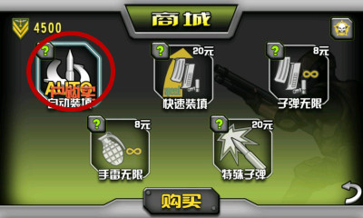 左上角是血量和杀人数量,右边是商城和菜单按钮,下面是武器和子弹