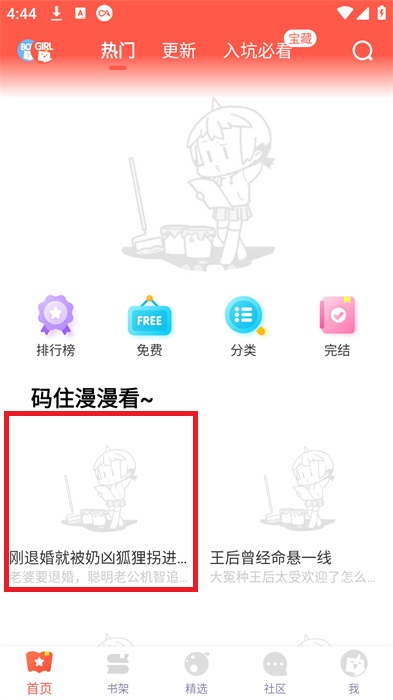 1、打开软件,在软件界面中我们可以找到随意的一本漫画,点击漫画去进行阅读;