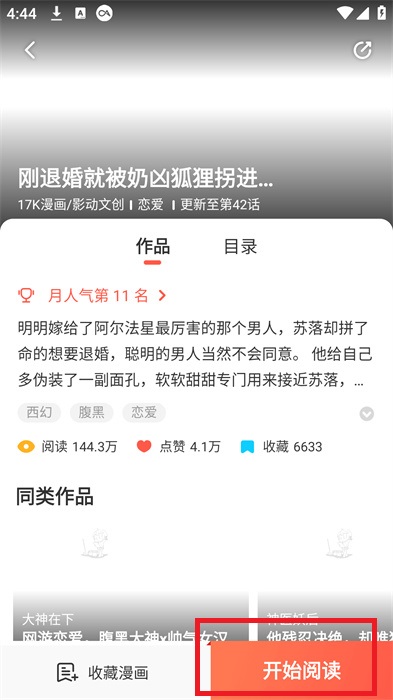 2、在漫画详情界面中,我们需要点击其中的【开始阅读】点击进行阅读;
