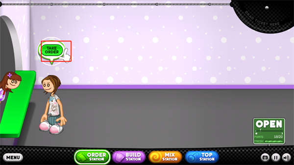 1、进入场景内之后将会有顾客来进行点单,玩家需要进行对话的点击,以此来进行接单;