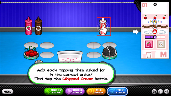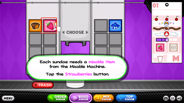 1、【选择口味】拥有非常多的原材料可以制作,让你能够制作不同的口味,还会有非常多的装饰品;
