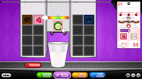 4、倒入好之后玩家将需要进行不同口味原料汁的放置,点击对应按钮即可;