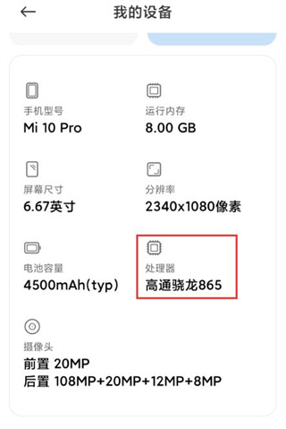 2、在设备信息中查看【处理器型号】是否为高通骁龙。