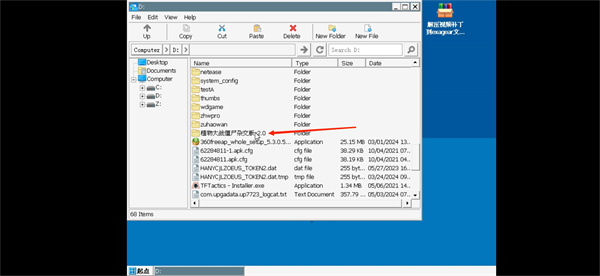 6.进入模拟器后找到D盘-植物大战僵尸杂交版2.0文件夹,找到植物大战尸杂交版v2.0安装程序即可开始安装
