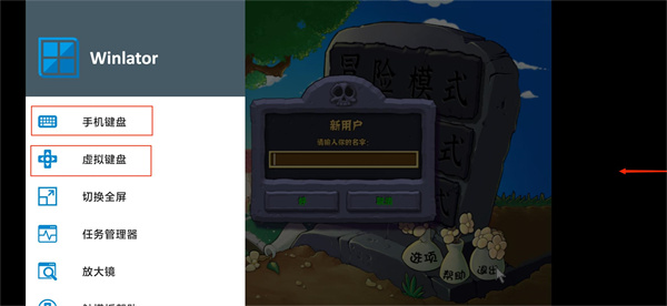 10.这时候用手指从屏幕最右边往左划动,就会有弹窗出来,选择手机键盘或虚拟键盘,就可以取名字了