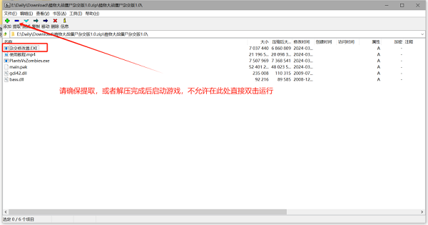 处理建议:请确保解压完成后再运行,请不要在压缩软件中运行,游戏文件不允许拖动到其他地方