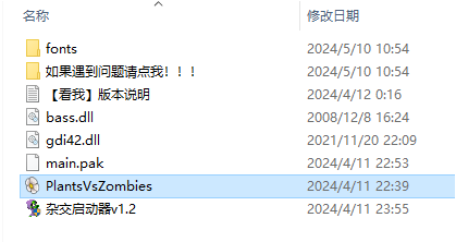 1、首先需要解压缩包,然后在文件夹中点击打开游戏本体【PlantsVsZombies】运行游戏程序;