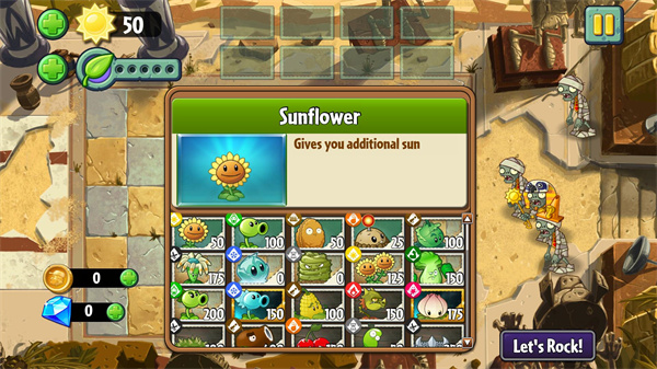 在这里不需要解锁植物,因为所有植物都已经解锁了,并且针对不同章节,会有不同特色植物;