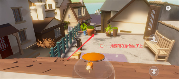 4、最后需要落在地图上的紫色垫子上,这样鱼缸才不会破碎;