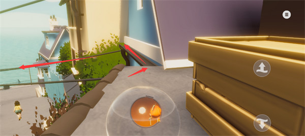 6、然后来到一个屋檐旁边,你需要借助管道然后到电缆上,这样就可以继续;
