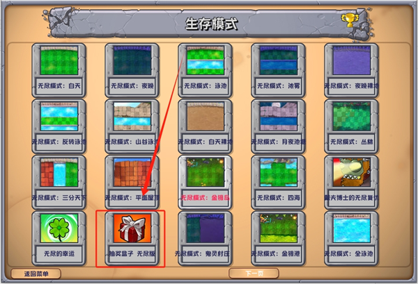2、在生存模式中将会看到超多的迷你小游戏,在最下方找寻到抽奖盒子无尽版;