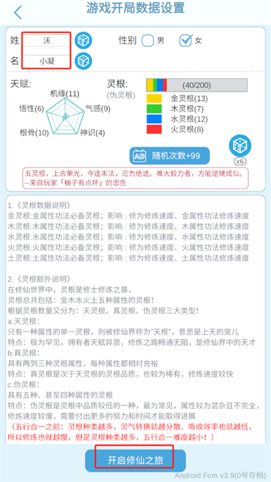 2、在该界面之中,玩家需要进行姓名以及能力的调整,以使得自己能够更加的独一无二;