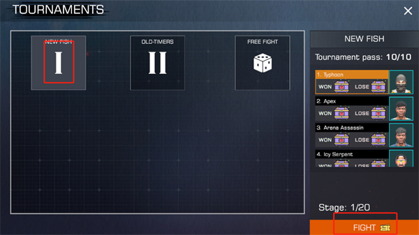 2、玩家需要进行战局的选择,可以是第一个也可以是第二个,选择好之后点击“FIGHT”即可;