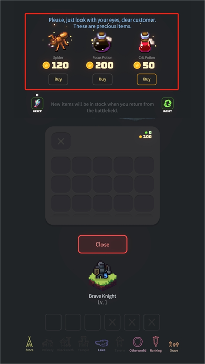 4、这些道具都能够在战场上进行增益,如果有金币可以选择全部拿下;