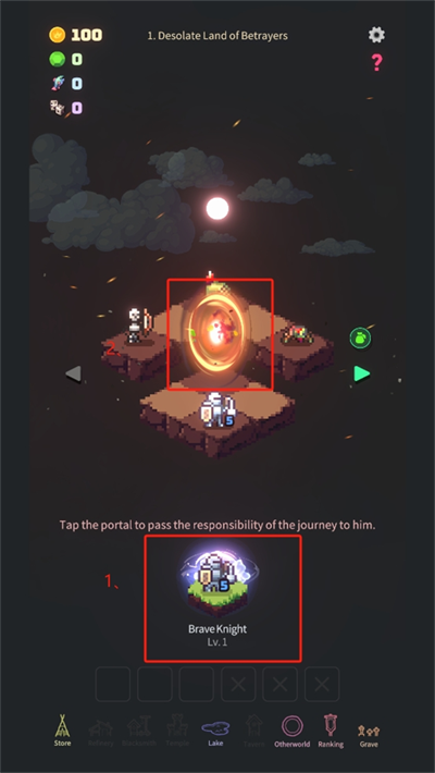 5、选择下方的勇士即可自动开启传送阵,点击进入传送阵进入战场开启挑战。