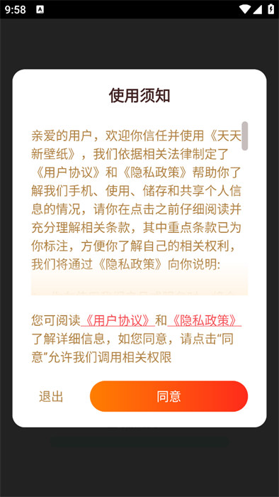 3、打开软件点击同意之后就能进入到软件里面选择壁纸资源了;