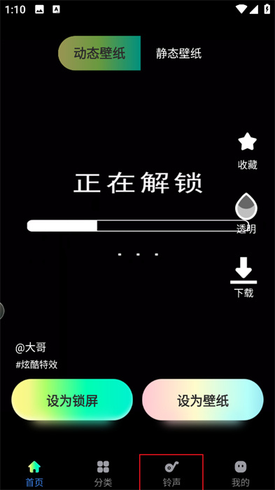 2、顺利进入首页,可以看到这里都是清晰的动态壁纸,可以点击下方的菜单栏进行切换;