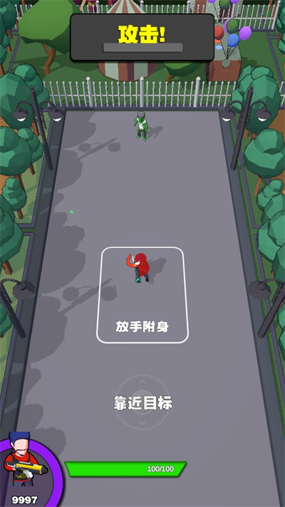 2、通过移动到前方找到人类可以进行附身,然后进行攻击作战现在拿起武器攻击前方僵尸;
