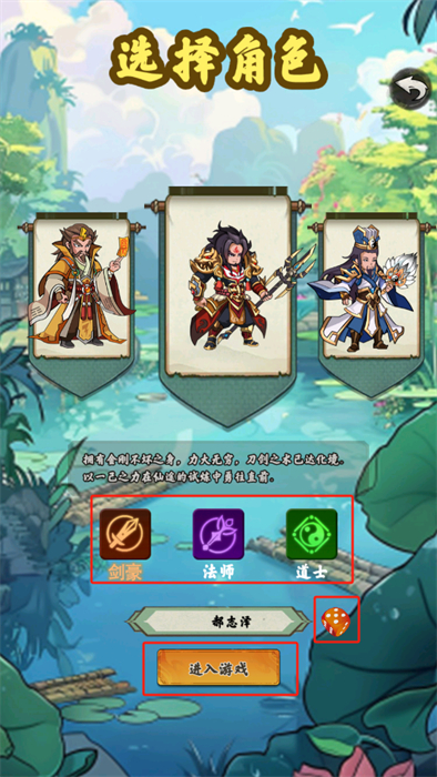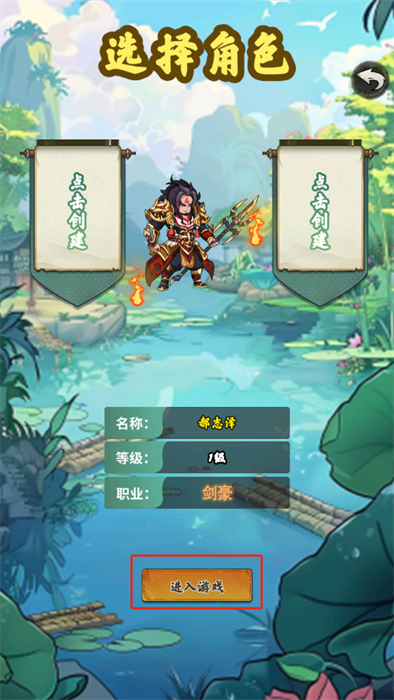 2、顺利的进入到游戏之中后,玩家首先需要进行职业的选择,选择好之后可以进行名字的拟定,一切准备就绪即可进行【进入游戏】按钮的点击;