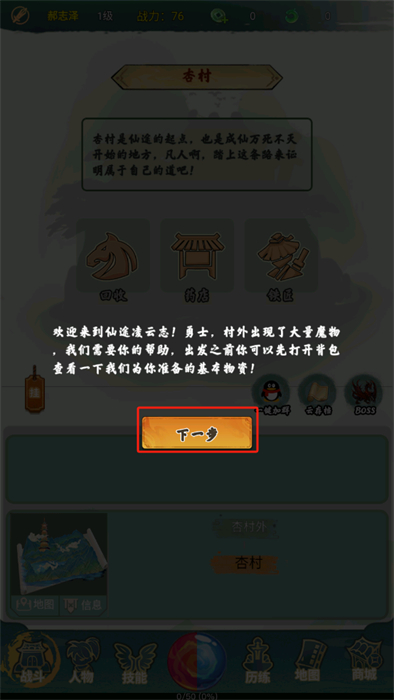 4、进入到冒险的场景之后,游戏将会有一段引导步骤,玩家可以利用步骤的教学来熟悉游戏。