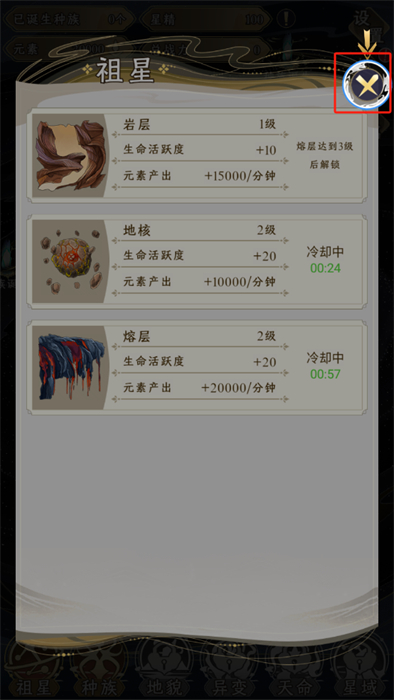 2、顺利的进入到祖星的信息栏之后,玩家将需要对祖星的一些地层进行升级,以使得祖星更加活跃;