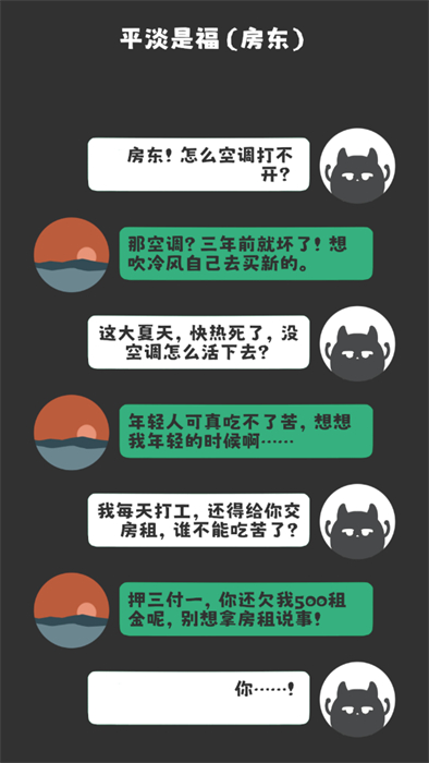 1、进入到场景内之后,玩家将可以看见自己和房东的对话,这段对话是背景的介绍;
