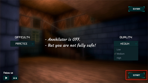 4、此时玩家将会来到一个难度的选择界面,新手可以不用进行难度的选择,默认模式即可,点击【start】按钮以开启游戏。