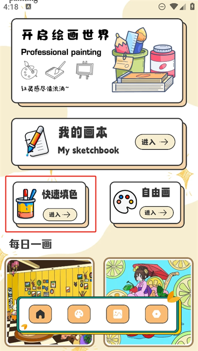 1、进入软件后可以看到有超多的绘画功能更使用,在绘画上我们可以以快速填色的方式为例;