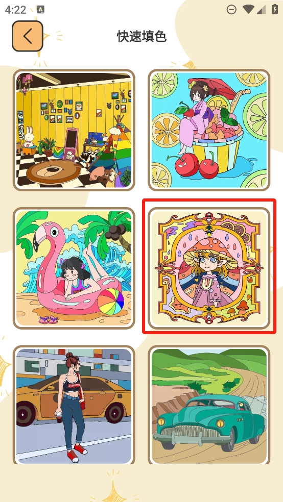 2、进入快速填色中将会看到有多款绘画图案可以自由选择,我们以这幅画为例进行填色;
