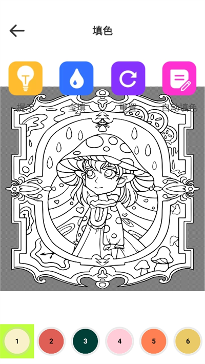 3、进入后会看到没有填色前的图案是黑白线条的图案,我们需要根据图案内容完成上色