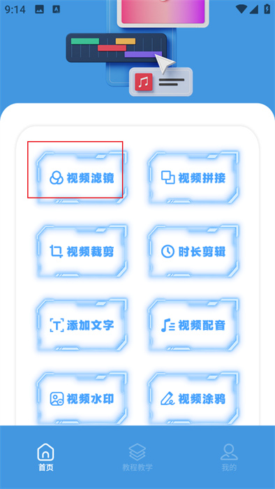 2、接着,进入首页可以看到很多现成的功能,点击【视频滤镜】,如下图所示;