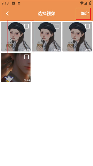 4、紧接着,挑选需要的视频并点击右上角【确定】;