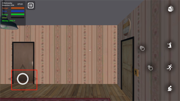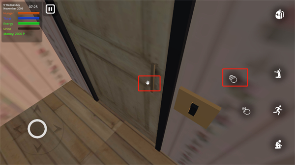 4、当玩家将自己的角色移动到门边时,将会出现小手的标志,点击右方的另一个大一点的手标志,即可完成开门。