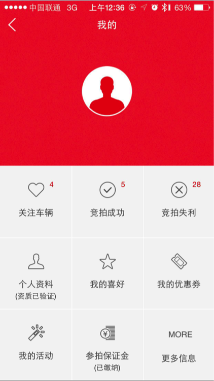 “我的”-查看关注车辆、优惠券、资质认证、参拍保证金审核等信息