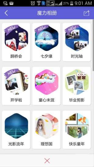 魔力相册app是一个可以把照片制作成炫美相册的软件。小编为大家提供了魔力相册app常见问题说明!下载并登陆魔力相册后,只需简单上传手机里的照片,就能一键直接制作出各种各样的图片,还能通过微信分享到朋友圈,快来绿色资源网下载魔力相册app向好友展示你的美照吧!