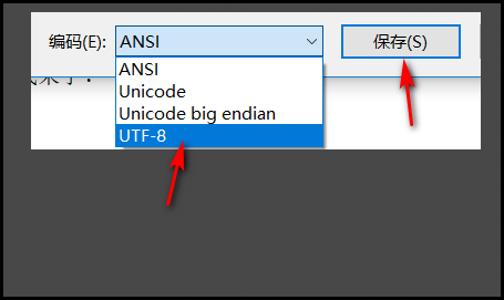 3.完成文本编辑,确定文本编码为UTF8,保存,如下图所示。
