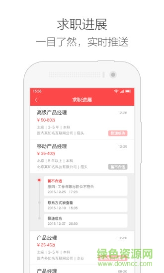 【求职进展】你的应聘进展一目了然,并可以实时推送给你,让找工作不再盲目等待;