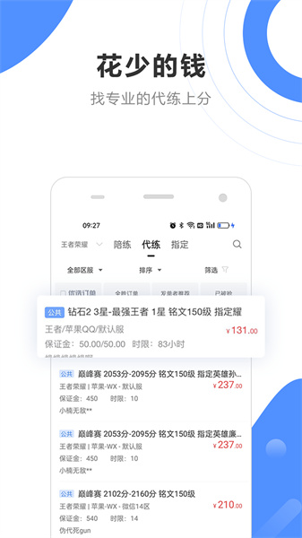 王者代练平台接单都有哪些呢?王者荣耀是现在最热门的游戏之一,并且玩家的年龄也跨越很大,大部分上班党、学生党会没有时间上线,并且部分实力不足但是想要各种国标的玩家都会需要用到代练,今天小编就给大家整理了多款王者代练的软件合集,每个软件都是价格公道没有广告的,能满足用户的日常需求,并且实力很好的玩家还可以线上注册账号,在日常时间帮助别人代练赚取部分收益,想要对王者代练有兴趣的用户快来下周吧!