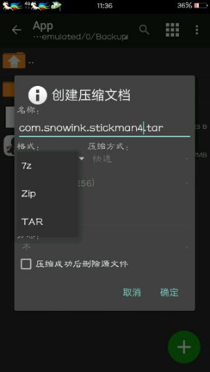 6.打开zarchiver,把原来的tar格式的压缩包重命名,复制一下他的名称,之后就可以删掉了,再长按修改后的data文件,选择压缩...格式仍然是tar 。