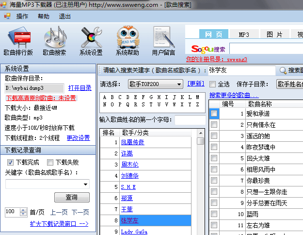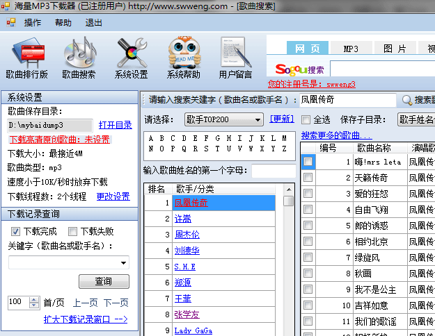 2.只要设置好歌曲类型(mp3、wma、rm)和歌曲大小,系统将按您的设置下载符合要求的歌曲。