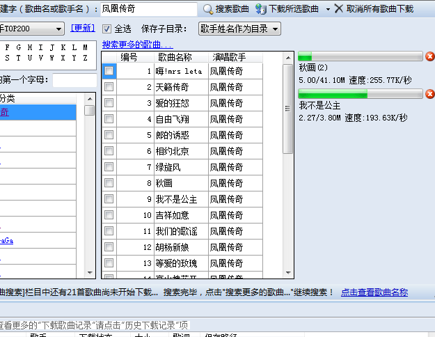 3.自动抛弃不可下载的歌曲链接,并按您的设置,放弃下载速度低的歌曲,大大加快了下载速度。