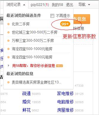 只要您登录以后使用58同城搜索信息,当您的筛选大于等于3个条件时,我们就为您自动保存这个信息为“订阅条件”。每天您第一次登陆58同城时,我们都会自动帮您检索您的“订阅条件”是否有更新的内容,如果有更新,我们会在网页上方为您弹出提示;