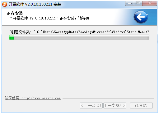 确认完之后程序开始自动安装,开票软件安装时间较长,请耐心等待安装程序完成安装。