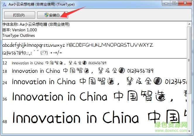 1、在绿色资源网站免费下载“Aa小云朵想吃糖”安装包,获得字体安装程序: