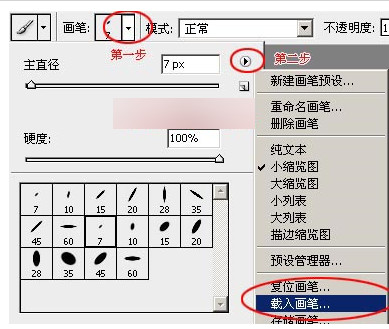 2、从画笔的设置的菜单中选择“载入画笔”。