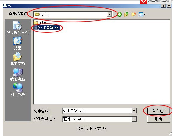 3、找到你放笔刷的文件夹,点选你要用的笔刷然后点“截入”。